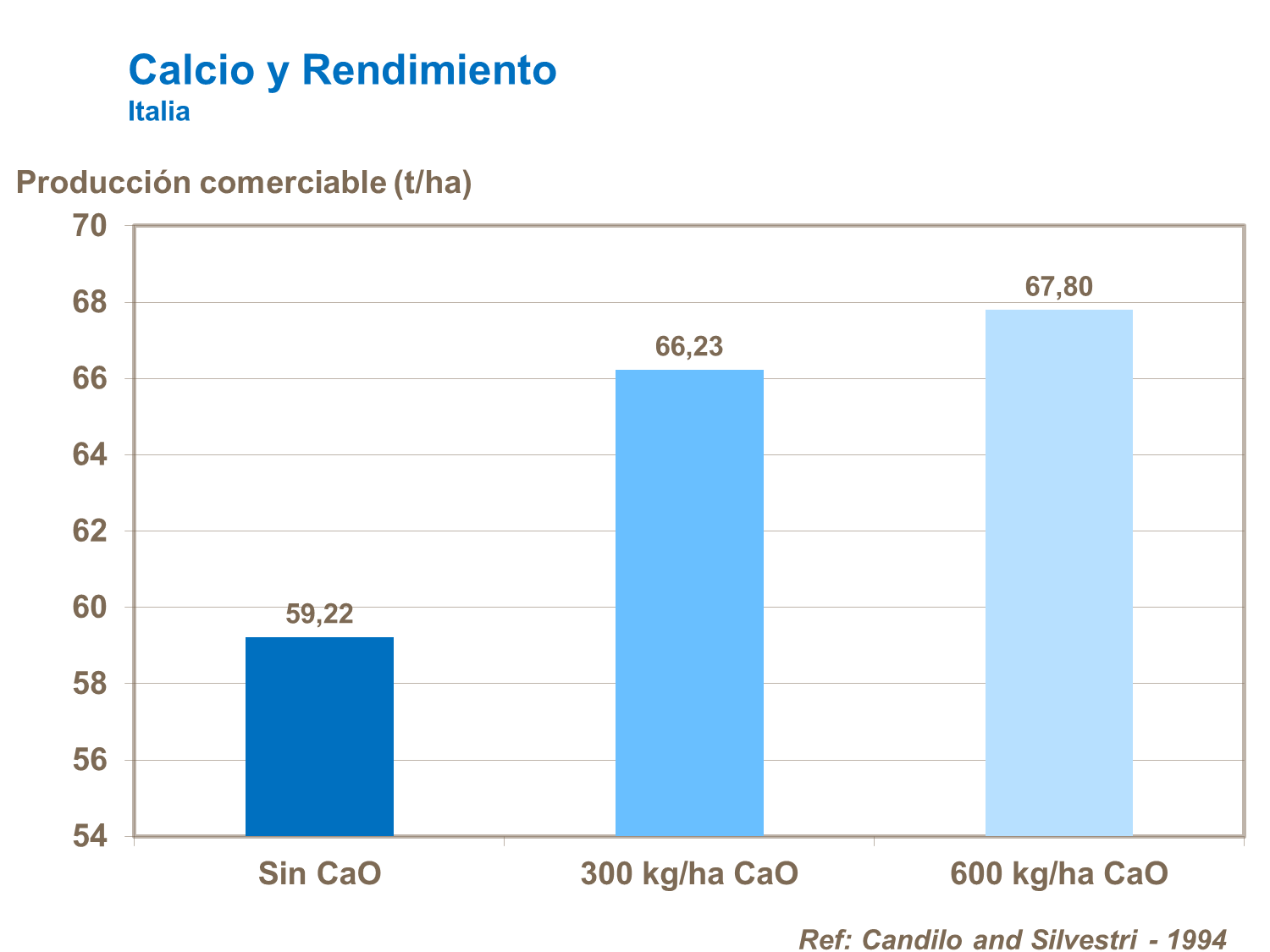 En el cultivo de tomate, el calcio es necesario para desarrollo foliar, la raíz y el rendimiento. La disponibilidad de calcio a mitad de temporada es crítica para obtener una alta producción. Un suministro continuo durante todo el ciclo es también importante, siempre equilibrado con el potasio y el magnesio.